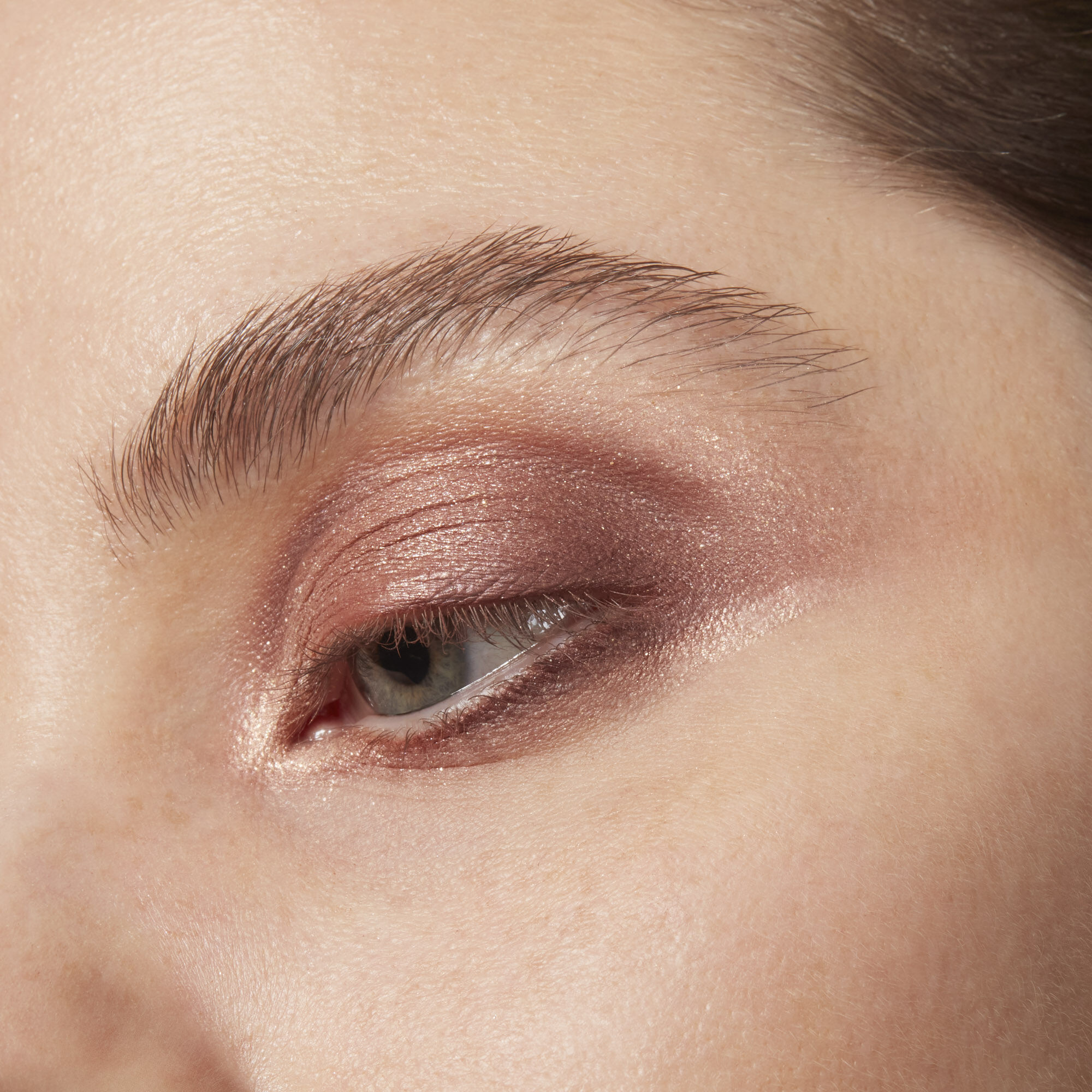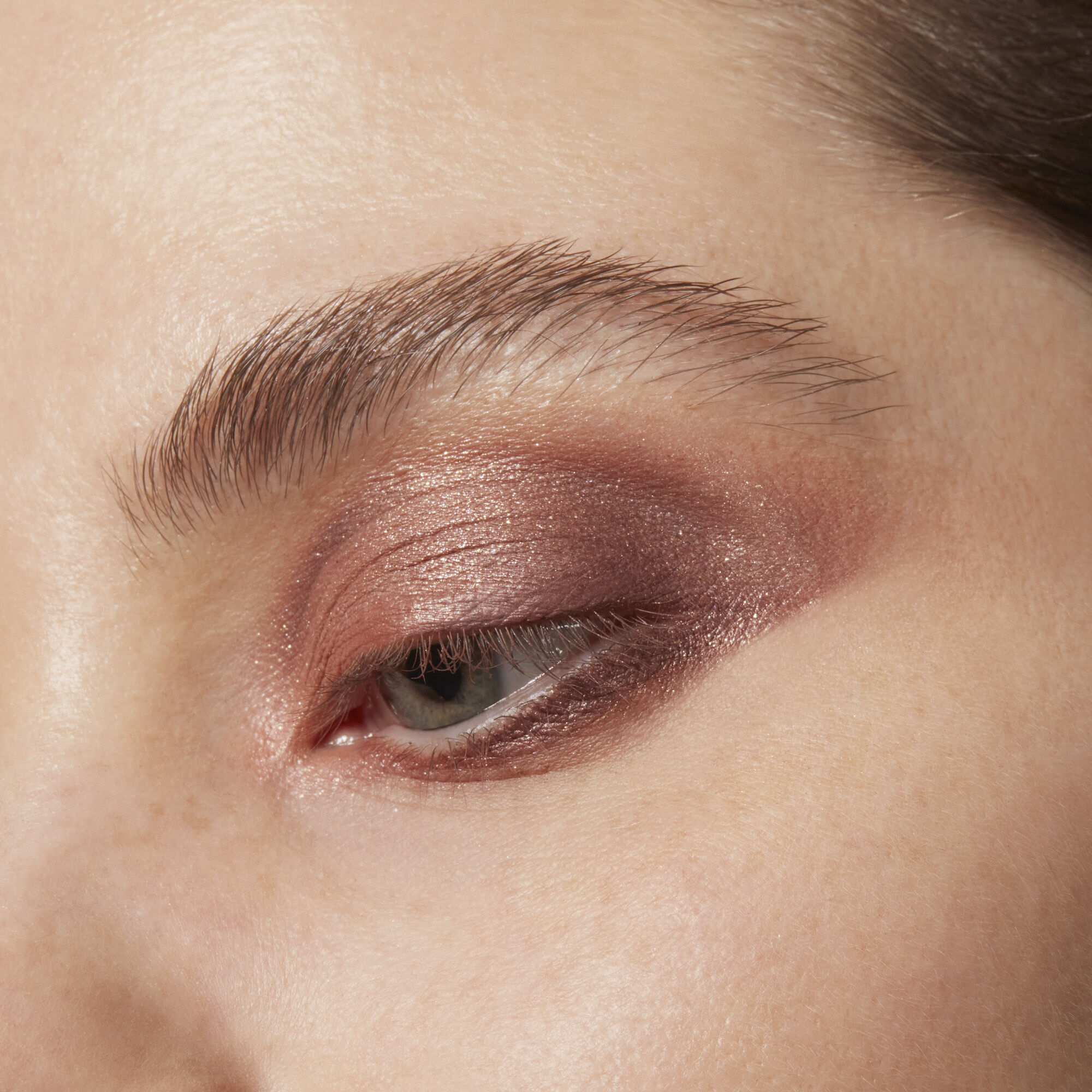 Start with the nude Poudre base, by applying evenly all over the lid with your finger. Use the Dusk shade to shape the crease and the upper and lower lash line to add definition. Use Palazzo as a transition shade to soften the definition and create a smoky effect. Apply the Bronze shade all over of the lid to bring a diffused sheen. Finish the look by pressing the add-on shimmer of your choice to the inner corner.